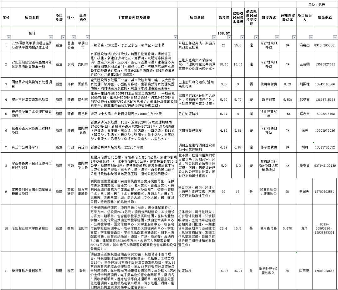 9月5日,河南省發(fā)改委公布首批向民間資本推介的11個(gè)重點(diǎn)項(xiàng)目清單,進(jìn)一步加大民間資本進(jìn)入政府投資領(lǐng)域的力度。推介的項(xiàng)目符合產(chǎn)業(yè)政策和發(fā)展規(guī)劃,涵蓋了干線公路、水利、環(huán)保、市政、文…