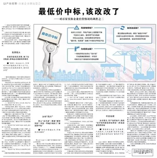 導(dǎo)讀 人民日?qǐng)?bào)繼5月31日之后,如此短時(shí)間內(nèi),罕見(jiàn)的再一次談"最低價(jià)中標(biāo)"問(wèn)題:《最低價(jià)中標(biāo),該改改了!》。制造業(yè)工程質(zhì)量因此問(wèn)題頻發(fā),使得整個(gè)行業(yè)屢屢蒙羞的同時(shí),…