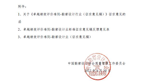 中勘協(xié)質(zhì)量管理委員會關(guān)于卓越績效評價準(zhǔn)則-勘察設(shè)計行業(yè)(征求意見稿)征求意見