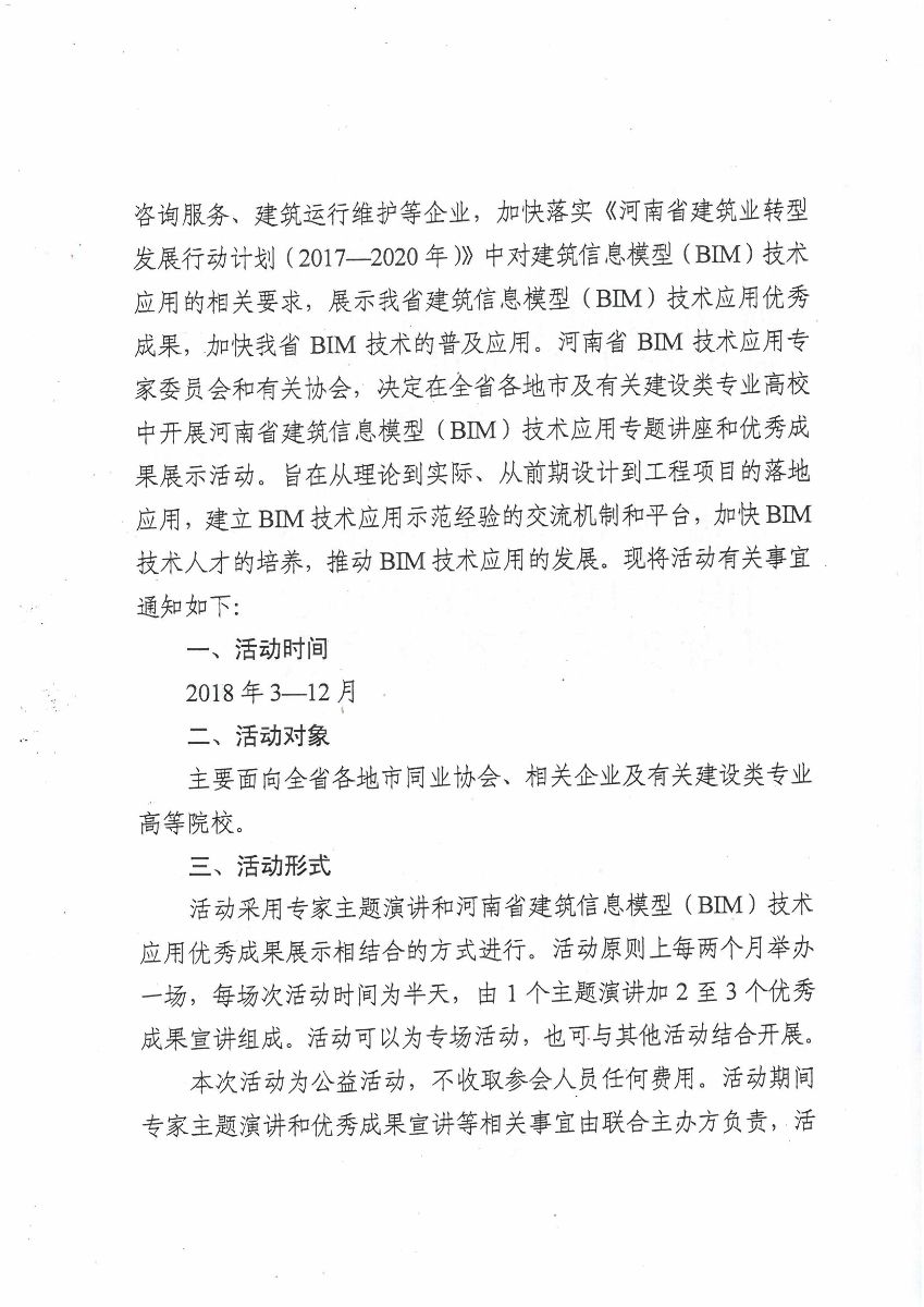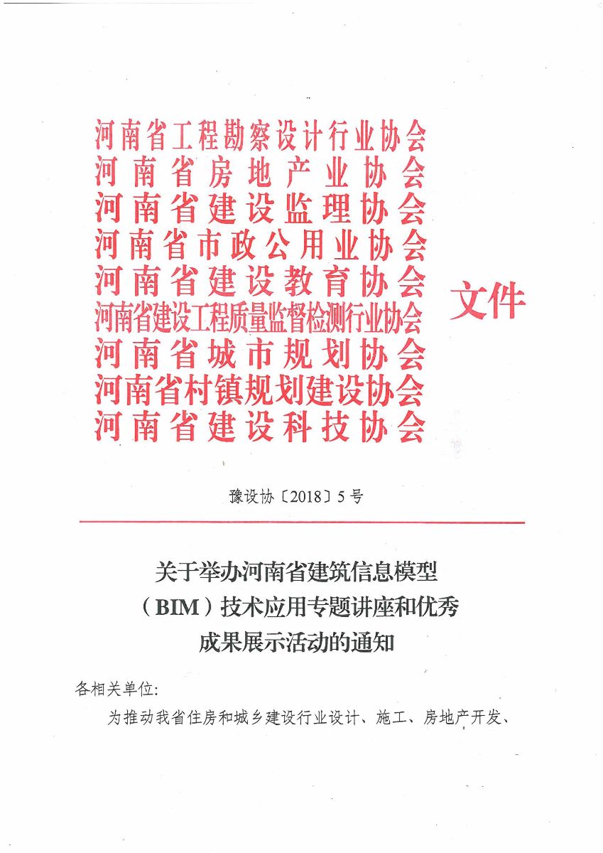 關(guān)于舉辦河南省建筑信息模型(BIM)技術(shù)應(yīng)用專題講座和優(yōu)秀成果展示活動(dòng)的通知