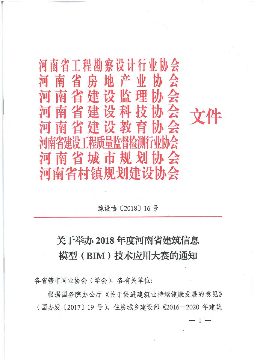關(guān)于舉辦2018年度河南省建筑信息模型(BIM)技術(shù)應(yīng)用大賽的通知