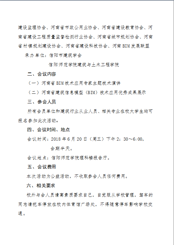 關(guān)于舉辦“河南省建筑信息模型(BIM)技術(shù)應(yīng)用專題講座和優(yōu)秀成果展示(信陽(yáng)站)活動(dòng)”的通知