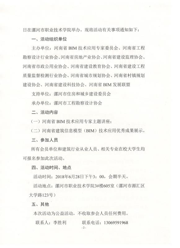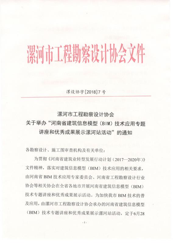 漯河市工程勘察設計協(xié)會關于舉辦“河南省建筑信息模型(BIM)技術應用專題講座和優(yōu)秀成果展示活動”的通知