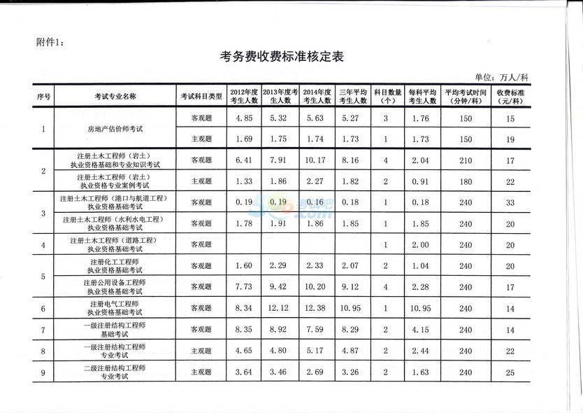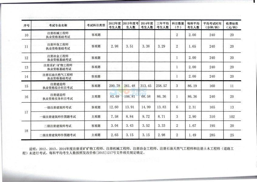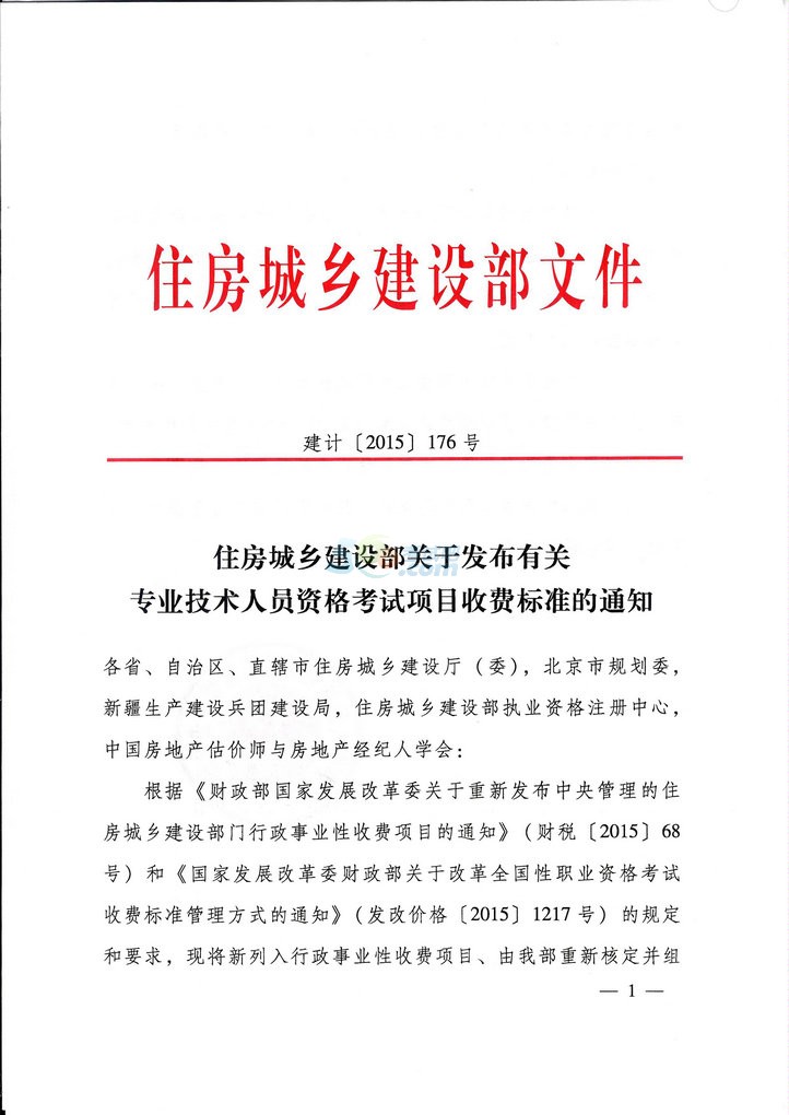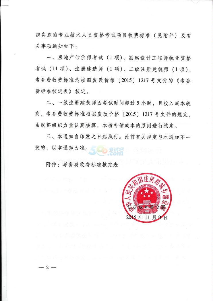 住房城鄉(xiāng)建設(shè)部關(guān)于發(fā)布有關(guān)專業(yè)技術(shù)人員資格考試項(xiàng)目收費(fèi)標(biāo)準(zhǔn)的通知