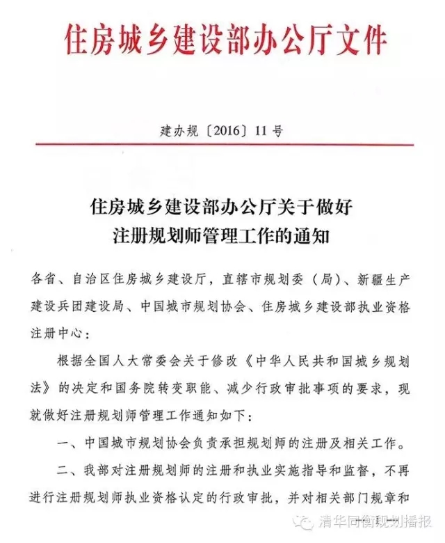 同時發(fā)布《住房城鄉(xiāng)建設部辦公廳關于做好注冊規(guī)劃師管理工作的通知》,通知指出,今后將由中國城市規(guī)劃協(xié)會負責承擔規(guī)劃師的注冊及相關工作,住建部對注冊規(guī)劃師的注冊和執(zhí)業(yè)實施指導和監(jiān)督,不再進行注冊規(guī)劃師執(zhí)業(yè)資格認定的行政審批。