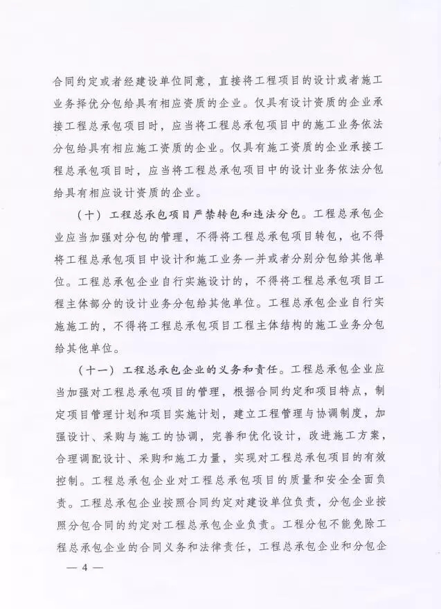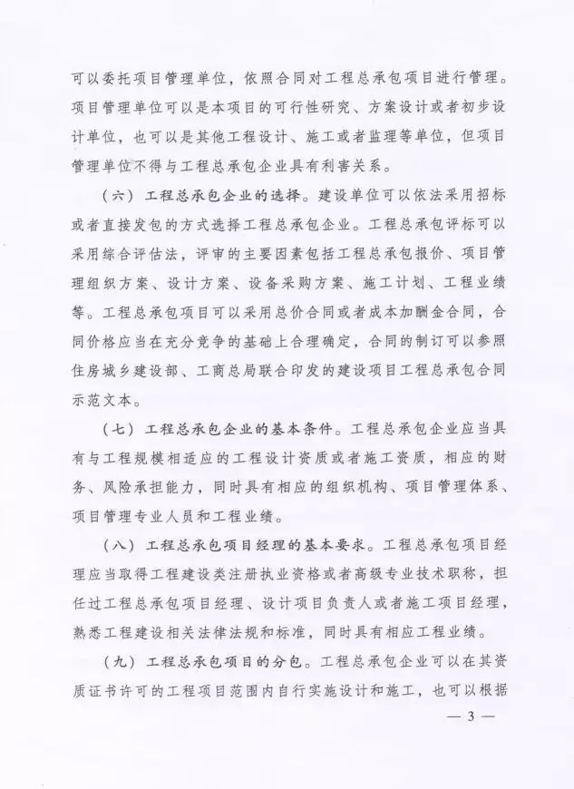 《意見》明確了實施工程總承包的前提條件,是需業(yè)主根據(jù)項目特點在可行性研究、方案設(shè)計或者初步設(shè)計完成后,業(yè)主按照確定的建設(shè)規(guī)模、建設(shè)標準、投資限額、工程質(zhì)量和進度要求等進行工程總承包項目發(fā)包。