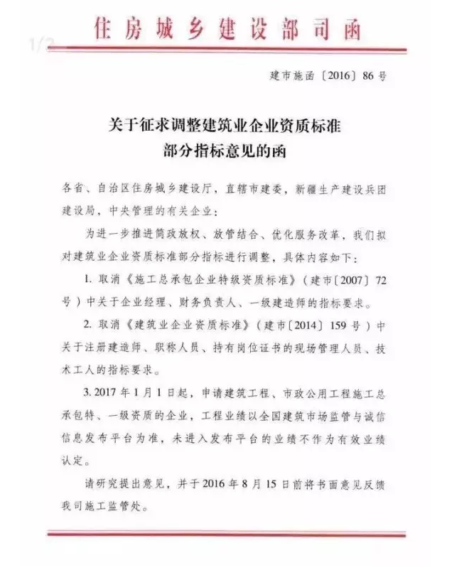 經(jīng)記者向住建部核實,此文屬實,確為住建部建筑市場監(jiān)管司所發(fā)征求意見函。