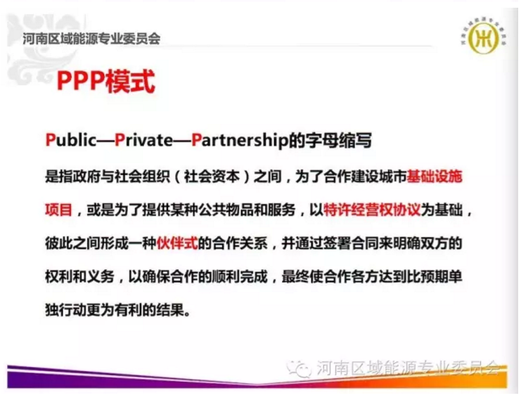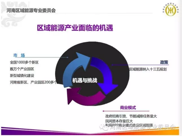 此次會議由新鄉(xiāng)市住房和城鄉(xiāng)建設(shè)委員會主辦,新鄉(xiāng)市綠色建筑協(xié)會承辦。 新鄉(xiāng)市住建委副主任楊少峰、新鄉(xiāng)市住建委副主任攸榮躍、新鄉(xiāng)市住建委科學(xué)技術(shù)科科長聶常仁、新鄉(xiāng)市水利局副局長鄭健、節(jié)水辦主任宋建明、節(jié)水科科長郭全成、五區(qū)五縣兩市主管城建水利建工的職能部門相關(guān)負責(zé)人出席了會議。新鄉(xiāng)市綠色建筑協(xié)會常務(wù)副會長劉勇坤,秘書長皇甫宜坤也參加了會議。 河南區(qū)域能源專業(yè)委員會副主任張軍鋒代表委員會,以“建設(shè)區(qū)域能源、推動能源革命”為主題進行了現(xiàn)場分享。分享內(nèi)容包括區(qū)域能源概念、PPP商業(yè)模式、歷史機遇以及案例等方面,全方位了闡述了區(qū)域能源領(lǐng)域的最新發(fā)展方式、方向和落地模式,獲得了相關(guān)領(lǐng)導(dǎo)和參會人員的高度評價。 下面我們就將其ppt 摘要分享給大家: