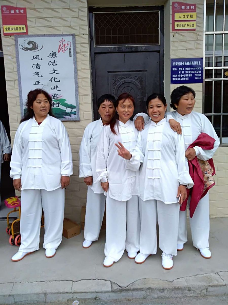 4月12日,商城縣田灣村村委會(huì)院內(nèi)一片歡歌笑語(yǔ)。全村愛(ài)好健身運(yùn)動(dòng)的男女老少換上了嶄新的太極服裝和鞋,隨著悠揚(yáng)的音樂(lè),練起了健身氣功——八段錦。統(tǒng)一的服裝,整齊的隊(duì)形,舒展的動(dòng)作,田灣村健身隊(duì)正式成立了!