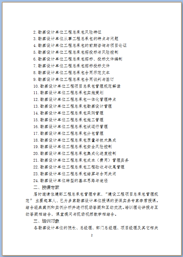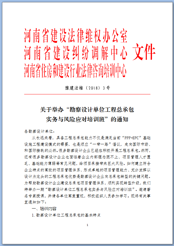 關(guān)于舉辦“勘察設(shè)計單位工程總承包實務(wù)與風(fēng)險應(yīng)對培訓(xùn)班”的通知