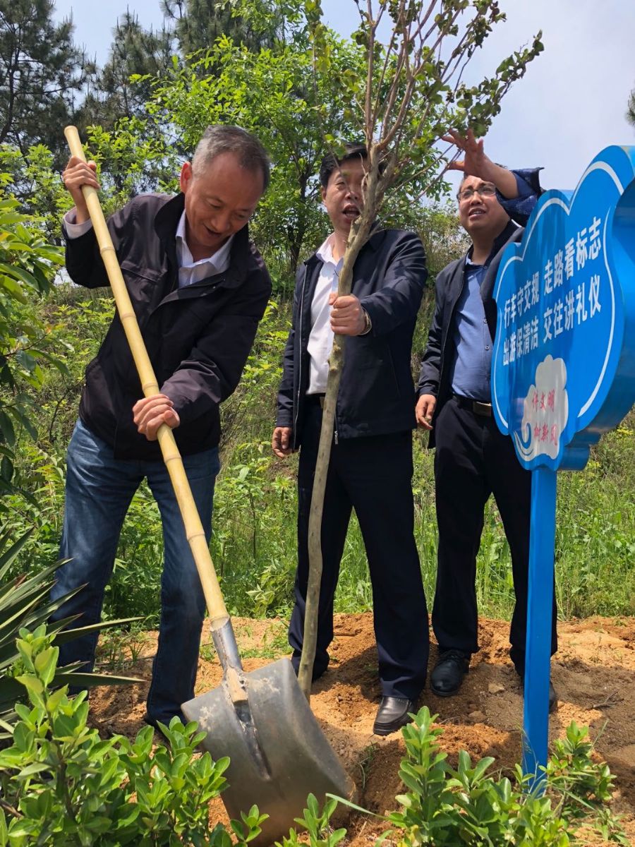 郭風(fēng)春副廳長(zhǎng)揮鍬栽下了百日紅