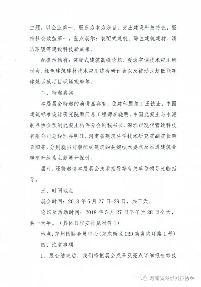 關(guān)于組織參觀 2018中國(鄭州)裝配式建筑與綠色建筑建材技術(shù)成果展覽會的通知