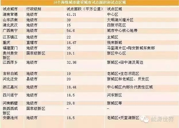 市場(chǎng)規(guī)模測(cè)算二:16個(gè)試點(diǎn)城市試點(diǎn)面積和試點(diǎn)區(qū)域海綿城市