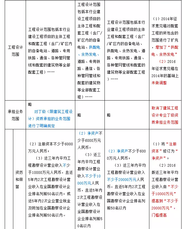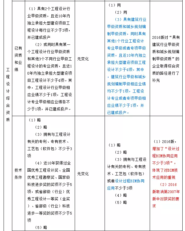 2016年征求意見(jiàn)稿與2007年印發(fā)的工程設(shè)計(jì)資質(zhì)進(jìn)行對(duì)比,總體上有這些變化: