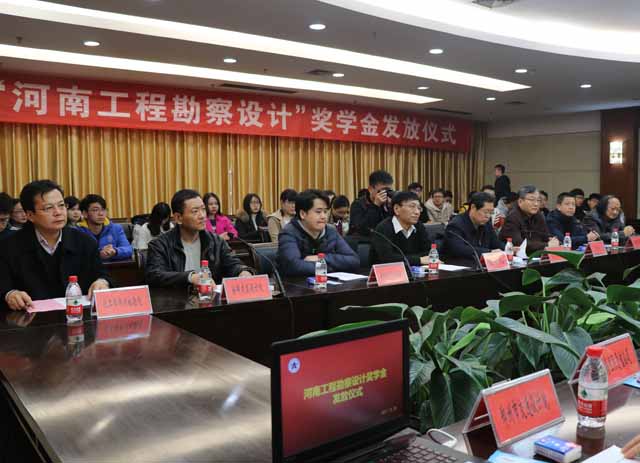 12月28日,鄭州大學(xué)2017年“河南工程勘察設(shè)計”獎學(xué)金發(fā)放儀式在鄭州大學(xué)主校區(qū)舉行。省工程勘察設(shè)計行業(yè)協(xié)會副理事長兼秘書長張守禮和鄭州大學(xué)對外聯(lián)絡(luò)辦公室主任張書祥等主要負(fù)責(zé)人以及16家捐資企業(yè)代表、30名受資助學(xué)生參加了儀式