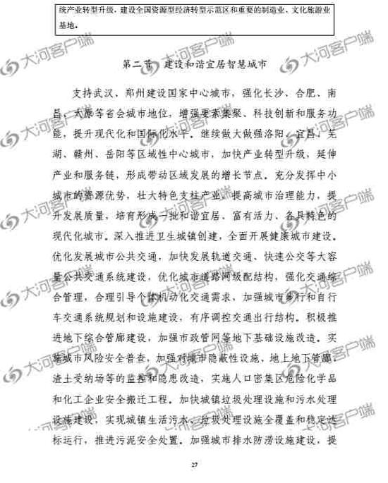 支持武漢、鄭州建設(shè)國家中心城市,強(qiáng)化長沙、合肥、南昌、太原等省會城市地位,增強(qiáng)要素集聚、科技創(chuàng)新和服務(wù)功能,提升現(xiàn)代化和國際化水平。繼續(xù)做大做強(qiáng)洛陽、宜昌、蕪湖、贛州、岳陽等區(qū)域性中心城市,加快產(chǎn)業(yè)轉(zhuǎn)型升級,延伸產(chǎn)業(yè)和服務(wù)鏈,形成帶動區(qū)域發(fā)展的增長節(jié)點。