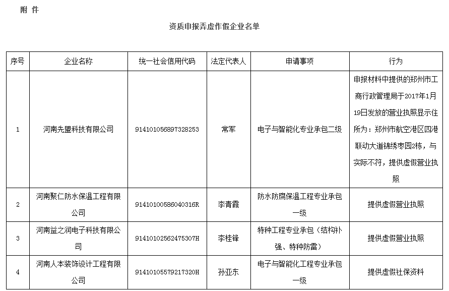 附件:資質申報弄虛作假企業(yè)名單