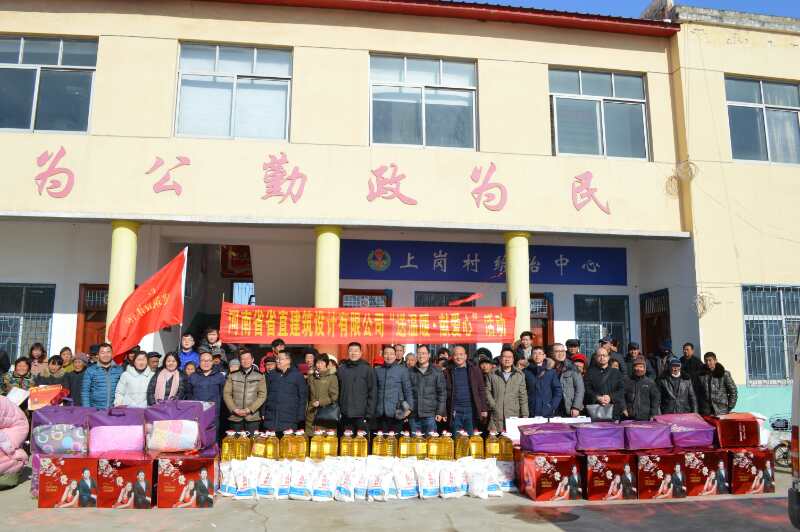 2018年1月10日,河南省省直建筑設(shè)計有限公司組織慰問團(tuán),在總經(jīng)理李建的帶領(lǐng)下奔赴駐馬店市上蔡縣邵店鎮(zhèn)上崗村。上崗村駐村第一書記劉書記和當(dāng)?shù)?ldquo;兩委”班子陪同慰問團(tuán)對37戶特困戶進(jìn)行了慰問。