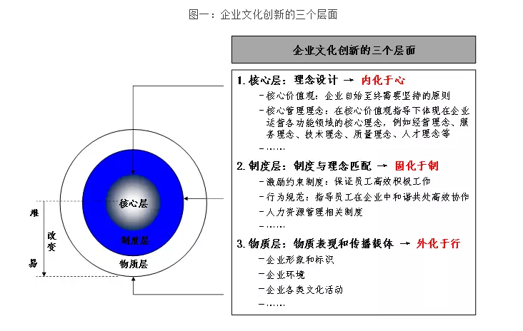 核心層指的是企業(yè)文化的核心理念,核心層創(chuàng)新應(yīng)該努力做到內(nèi)化于心。