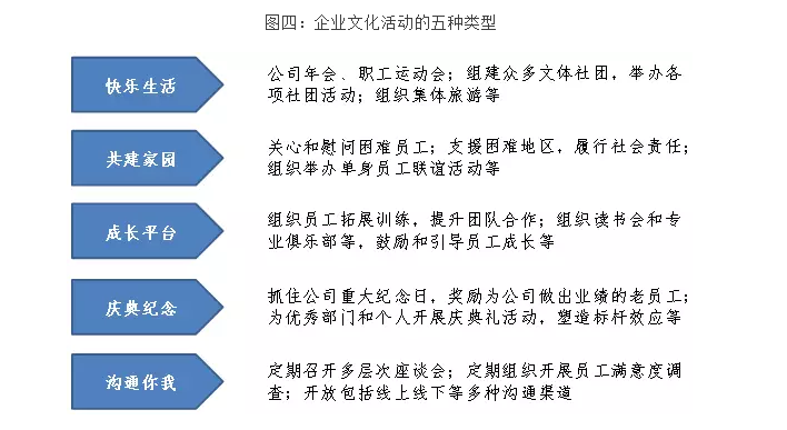 相對而言,勘察設(shè)計(jì)行業(yè)比較注重人性化管理,很多企業(yè)每年都開展了很多企業(yè)文化活動(dòng),也發(fā)揮了很好的企業(yè)文化宣貫作用。這些企業(yè)文化活動(dòng)大致可以分為五類,如下圖所示。