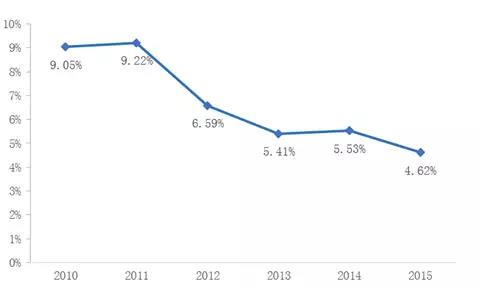 我們除了關(guān)注行業(yè)的營(yíng)業(yè)收入和凈利潤(rùn)外,也來(lái)扒一扒建筑設(shè)計(jì)行業(yè)的利潤(rùn)率。利潤(rùn)率往往更能反映企業(yè)真實(shí)的經(jīng)營(yíng)狀況和費(fèi)用控制水平。利潤(rùn)率越高,表明企業(yè)市場(chǎng)競(jìng)爭(zhēng)力越強(qiáng),發(fā)展?jié)摿υ酱螅芰υ綇?qiáng)。在2010-2015年,建筑設(shè)計(jì)企業(yè)利潤(rùn)率呈現(xiàn)整體呈現(xiàn)下滑趨勢(shì),2012年利潤(rùn)率出現(xiàn)大幅下滑,主要原因是由于建筑設(shè)計(jì)企業(yè)工程總承包業(yè)務(wù)大幅增加,拉低了利潤(rùn)率。利潤(rùn)率下行趨勢(shì)明顯,行業(yè)整體競(jìng)爭(zhēng)力有所下降。