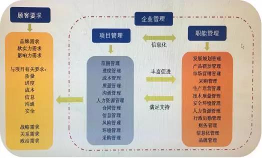 勘察設(shè)計(jì)企業(yè)管理一般包括項(xiàng)目管理和職能管理(如下圖),項(xiàng)目管理的核心是滿足顧客及相關(guān)利益方的要求,職能管理的核心目標(biāo)是為項(xiàng)目提供支撐和支持,并約束項(xiàng)目實(shí)施活動,所以,質(zhì)量管理不僅要關(guān)注項(xiàng)目,更要關(guān)注外部需求的變化以及后臺管理(職能管理)的建設(shè),形成高層管總、職能主建、項(xiàng)目主戰(zhàn)的格局,才能更好地實(shí)現(xiàn)企業(yè)的戰(zhàn)略目標(biāo)。