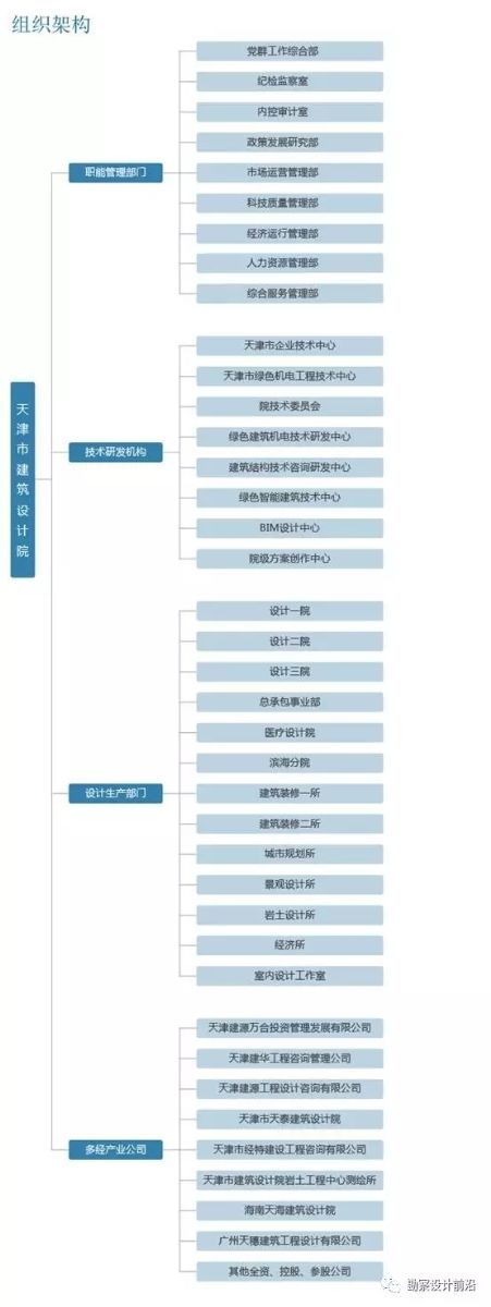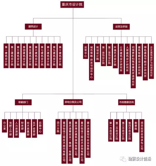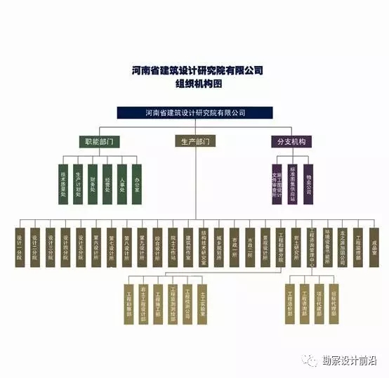 公司下設(shè)綜合設(shè)計(jì)分院、工程勘察分院、建筑創(chuàng)作室、工作室、工程咨詢管理、施工圖設(shè)計(jì)文件審查、工程檢測、市政、景觀、規(guī)劃、節(jié)能等多個業(yè)務(wù)部門和分支機(jī)構(gòu)。組織結(jié)構(gòu)圖如下: