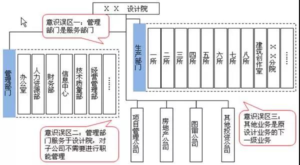 這一意識誤區(qū)的產(chǎn)生一方面是由于職能部門從最初的設(shè)定到長期以來的運行都是服務(wù)于設(shè)計院母體,久而久之形成了一定的慣性思維,而后續(xù)逐步衍生了越來越多的子公司后,也未在權(quán)責(zé)利上做進(jìn)一步梳理與明確;另一方面則確實也是設(shè)計院本身的職能工作繁重,無暇顧及子公司的管理。