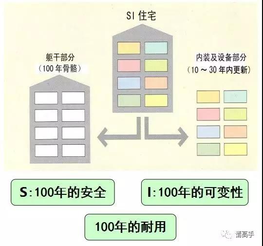 在這個問題上,從國外引進的管線分離SI體系的理念和做法應(yīng)推廣應(yīng)用。所謂SI體系,是支撐體S(Skeleton)和填充體I(Infill)相分離的建筑體系(主要是住宅)。支撐體是指建筑的骨架,但并不等同于國內(nèi)所說的主體結(jié)構(gòu),還包括外圍護和公共管井等可保持長久不變的部分,強調(diào)耐久性;填充體是指填充進支撐體的部分,包括內(nèi)裝和內(nèi)部設(shè)備管線等,強調(diào)靈活性與適應(yīng)性。