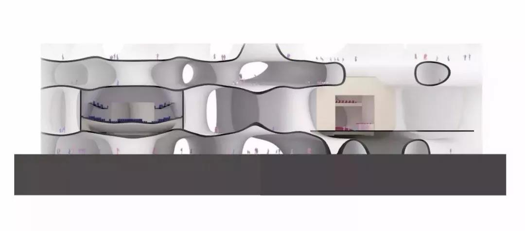 所以說,這個錯位堆疊的管體系,就像是多孔的海綿結構,將傳統的梁與柱,消解在連續(xù)的曲面之中。
