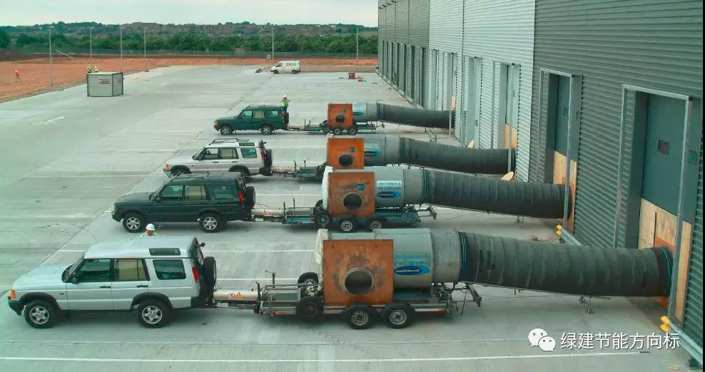 如果你們正在建設(shè)被動(dòng)房,相信你們一定遇到檢測這個(gè)難題。被動(dòng)房氣密性檢測的標(biāo)準(zhǔn)是要實(shí)現(xiàn)室內(nèi)外壓差50Pa下的換氣次數(shù)值做到0.6.對于一個(gè)小型建筑來講,用一臺(tái)風(fēng)機(jī)可以輕松實(shí)現(xiàn)這個(gè)目標(biāo),但是中國的建筑物體積非常龐大,想達(dá)到預(yù)定室內(nèi)外壓差值,必須鼓更多的風(fēng)量,也就是要配置更多的電風(fēng)扇。按照經(jīng)驗(yàn),一臺(tái)電風(fēng)扇的風(fēng)量在10000m3,左右,檢測3000平米的建筑物沒問題,超過這些數(shù)字,比如幾萬平米的建筑,那么就需要上更多的檢測設(shè)備。這一塊相信國人還不是很清楚。因?yàn)榘凑债?dāng)前的一些被動(dòng)房示范工程來看,多數(shù)以抽檢某幾個(gè)房屋合格為手段,很少有全部檢測整棟大樓的案例。下面我們帶來國外的一系列建筑整體氣密性檢測的案例,讓大家開開眼,看看外國人是怎么看待檢測這回事的!