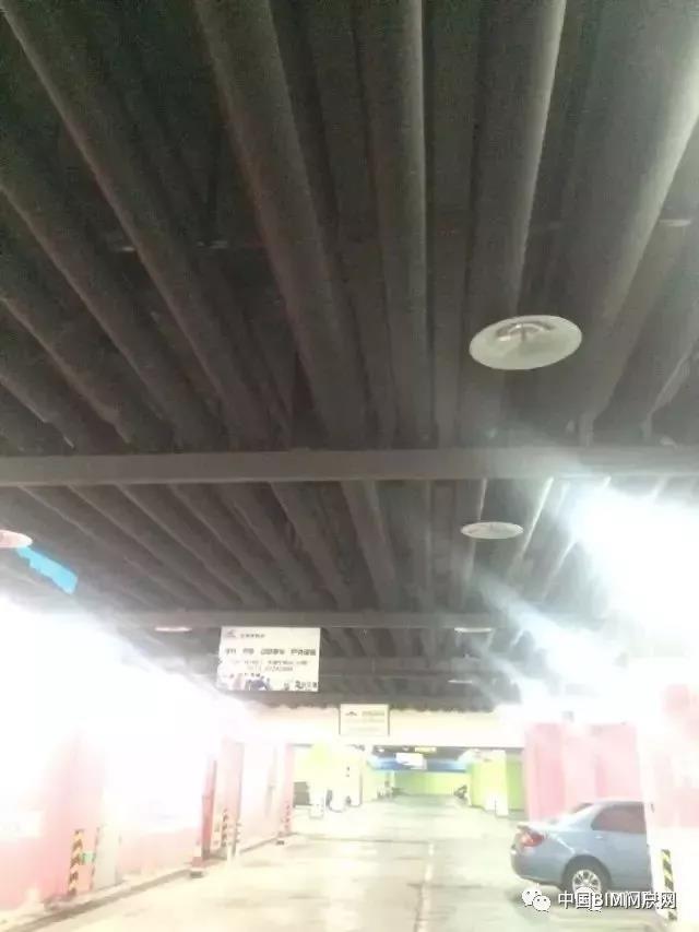 但是通過在Revit模型里的“預(yù)安裝”,通過碰撞檢測(cè)及管線綜合后,車庫(kù)可以實(shí)現(xiàn)這樣的效果: