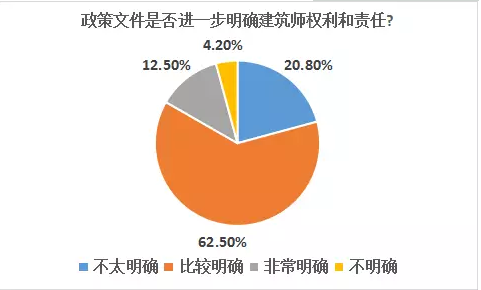 2.對政策文件是否進一步明確建筑師權利和責任方面,存在20.8%認為不太明確,4.2%認為不明確