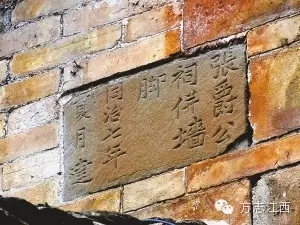 田下古城中張爵公祠外墻上的古磚記載著房屋名稱和建造年代
