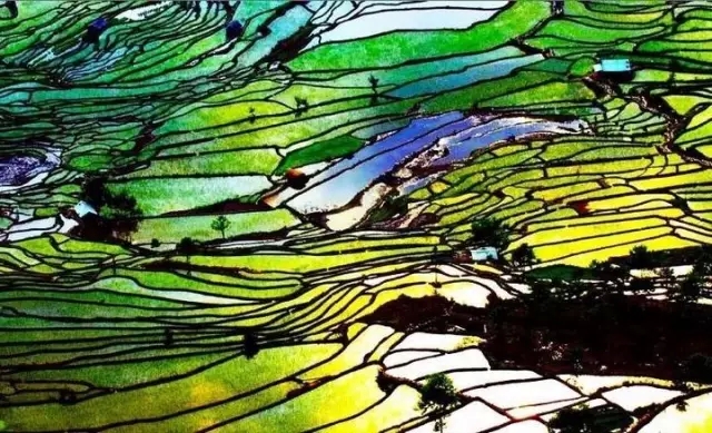 哀牢山的地勢險峻,山高谷深,海拔在3000米與600米間變化,形成了一個寒溫帶、亞熱帶和熱帶的立體氣候。那片山高谷深,溝壑縱橫,山地連綿,層巒疊嶂中藏著哈尼人的。哈尼人用頑強(qiáng)的毅力在這崇山峻嶺中開鑿出了世界聞名的、壯美的梯田。這片土地給了哈尼人物質(zhì)所需的同時也給了我們一個美麗的藝術(shù)圣地。