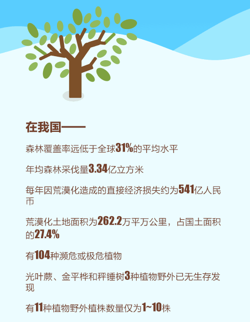 中國的植樹節(jié)開始時,是為紀念孫中山先生逝世而設立的。1979年2月23日,中國第五屆全國人大常務委員會第六次會議決定,以后仍以3月12日為中國的植樹節(jié),以鼓勵全國各族人民植樹造林,造福子孫后代。