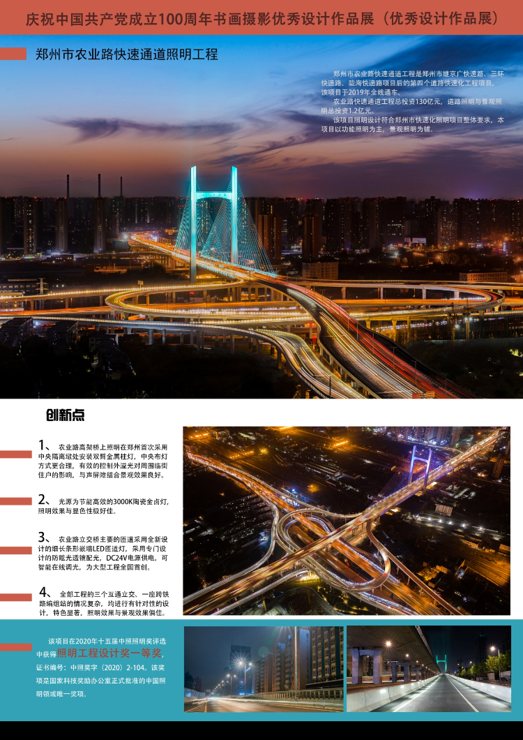 3)優(yōu)秀設計作品類:①鄭州市農業(yè)路快速通道照明工程;②鄭州航空港經濟綜合實驗區(qū)南部片區(qū)橋梁群工程。