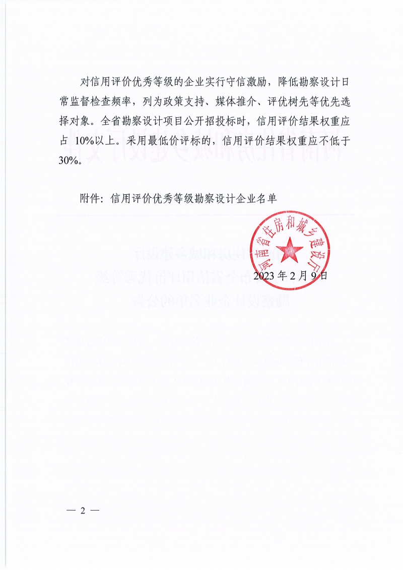 省住建廳關(guān)于首次公布全省信用評(píng)價(jià)優(yōu)秀等級(jí)勘察設(shè)計(jì)企業(yè)名單的公告