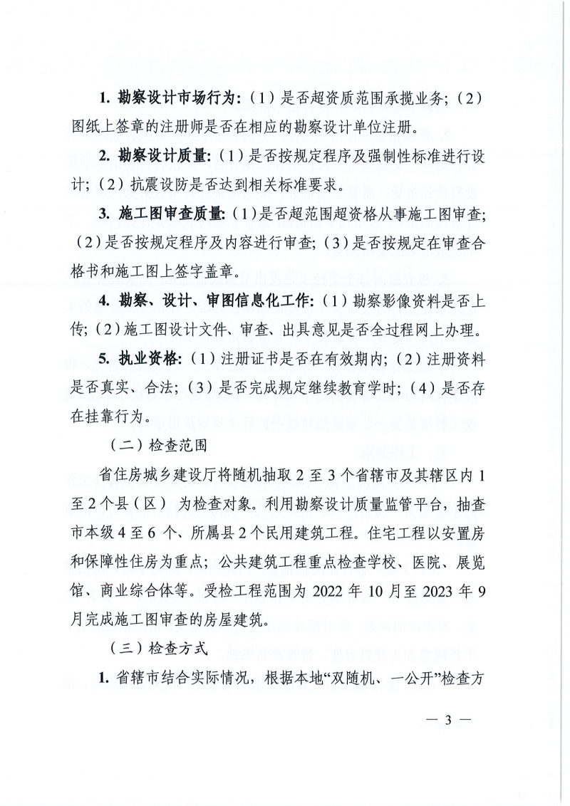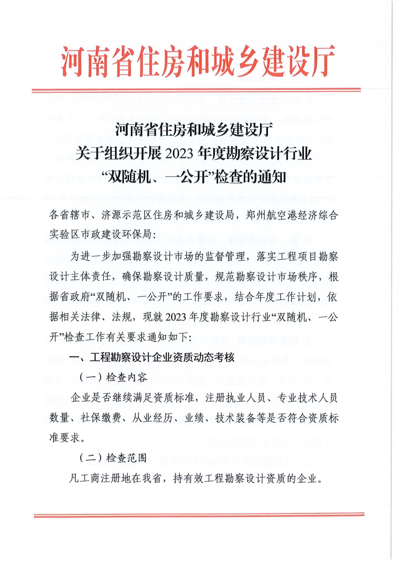 省住建廳關(guān)于組織開(kāi)展2023年度勘察設(shè)計(jì)行業(yè)“雙隨機(jī)、一公開(kāi)”檢查的通知
