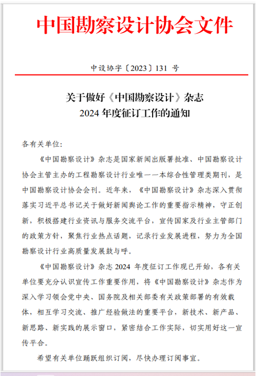 關(guān)于做好《中國勘察設(shè)計》雜志2024年度征訂工作的通知