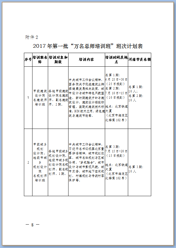 2. 2017年第一批“萬名總師培訓(xùn)班”班次計劃表