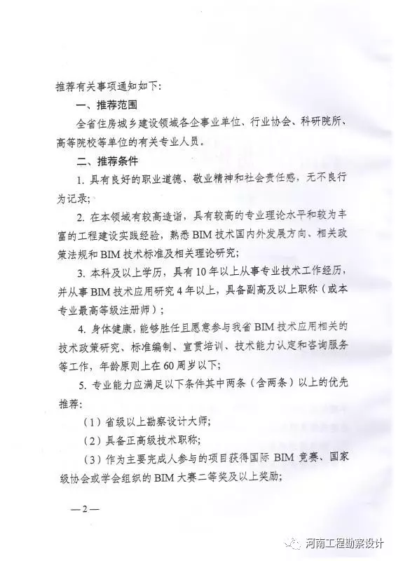 關于推薦河南省建筑信息模型(BIM)技術應用專家委員會專家成員的通知