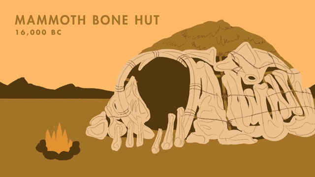 以巨大的猛犸骨架為支撐,上覆猛犸皮,絕佳的保暖性能幫助人類度過了嚴(yán)酷冰河時(shí)期,順便滅絕了這種巨大的哺乳動(dòng)物。