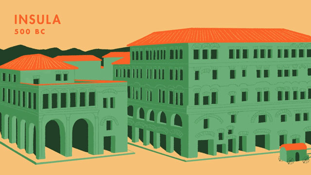 這才是羅馬普通平民所居住的地方。Insula是拉丁語“島”的意思,這是人類歷史上第一次出現(xiàn)供互不相識的城市居民在一座建筑中大雜居的情況,它們是公元前的蝸居房。