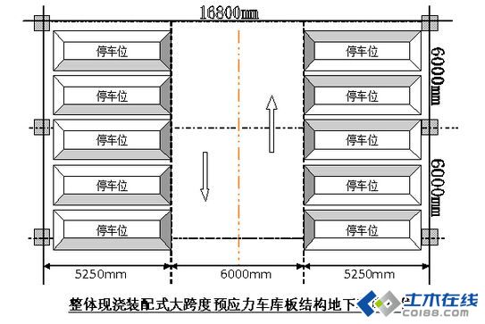 井字梁結構與現(xiàn)澆裝配大跨度車庫板結構對比車位布置圖: