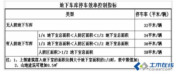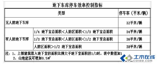 1:總面積指地下車庫外墻圍合的所有面積,當存在消防控制室、垃圾房、