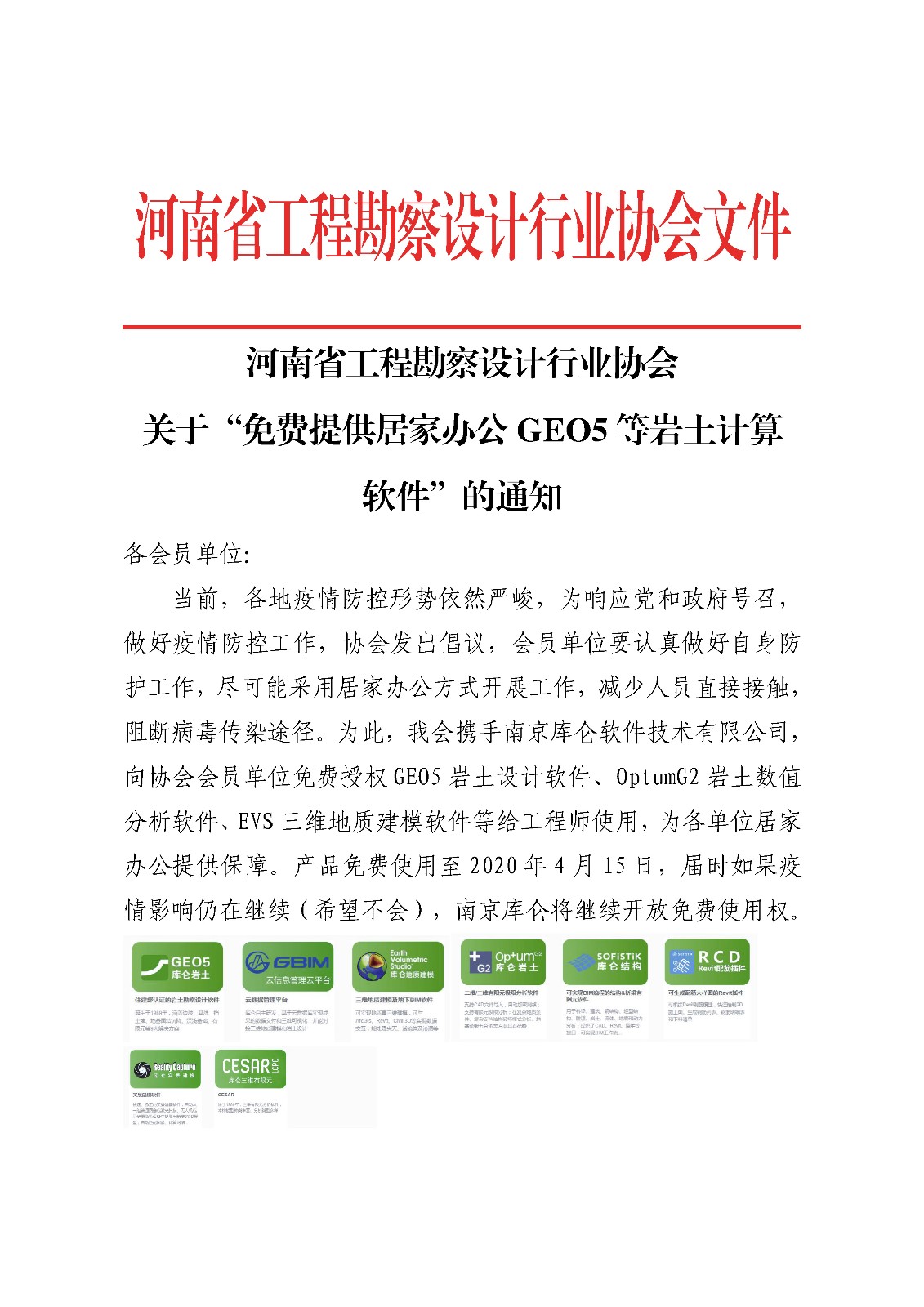省協(xié)會關(guān)于“免費提供居家辦公GEO5等巖土計算軟件”的通知