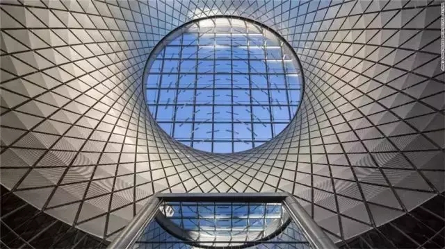 位于紐約市中心的富爾頓轉(zhuǎn)運(yùn)中心連接11條地鐵線路并每日運(yùn)送30000名乘客,中心建有大型天井,陽(yáng)光透過玻璃穹頂可直射入建筑內(nèi)。
