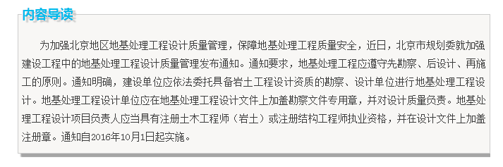 地基處理工程具有永久性、隱蔽性、難修復(fù)等特點,其質(zhì)量直接影響建設(shè)工程整體質(zhì)量安全。為加強北京地區(qū)地基處理工程設(shè)計質(zhì)量管理,保障地基處理工程質(zhì)量安全,依據(jù)《北京市建設(shè)工程質(zhì)量條例》、《房屋建筑和市政基礎(chǔ)設(shè)施施工圖設(shè)計文件審查管理辦法》等法律、法規(guī)及相關(guān)技術(shù)標(biāo)準(zhǔn),結(jié)合北京地區(qū)實際情況,現(xiàn)將加強建設(shè)工程中的地基處理工程設(shè)計質(zhì)量管理有關(guān)要求通知如下: