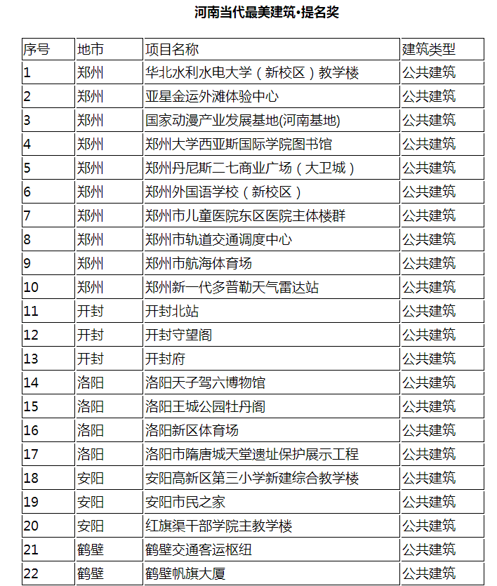 10月25日,經(jīng)過(guò)近五個(gè)月緊張有序的工作,“河南當(dāng)代最美建筑”名單正式出爐,共有125個(gè)項(xiàng)目榜上有名。